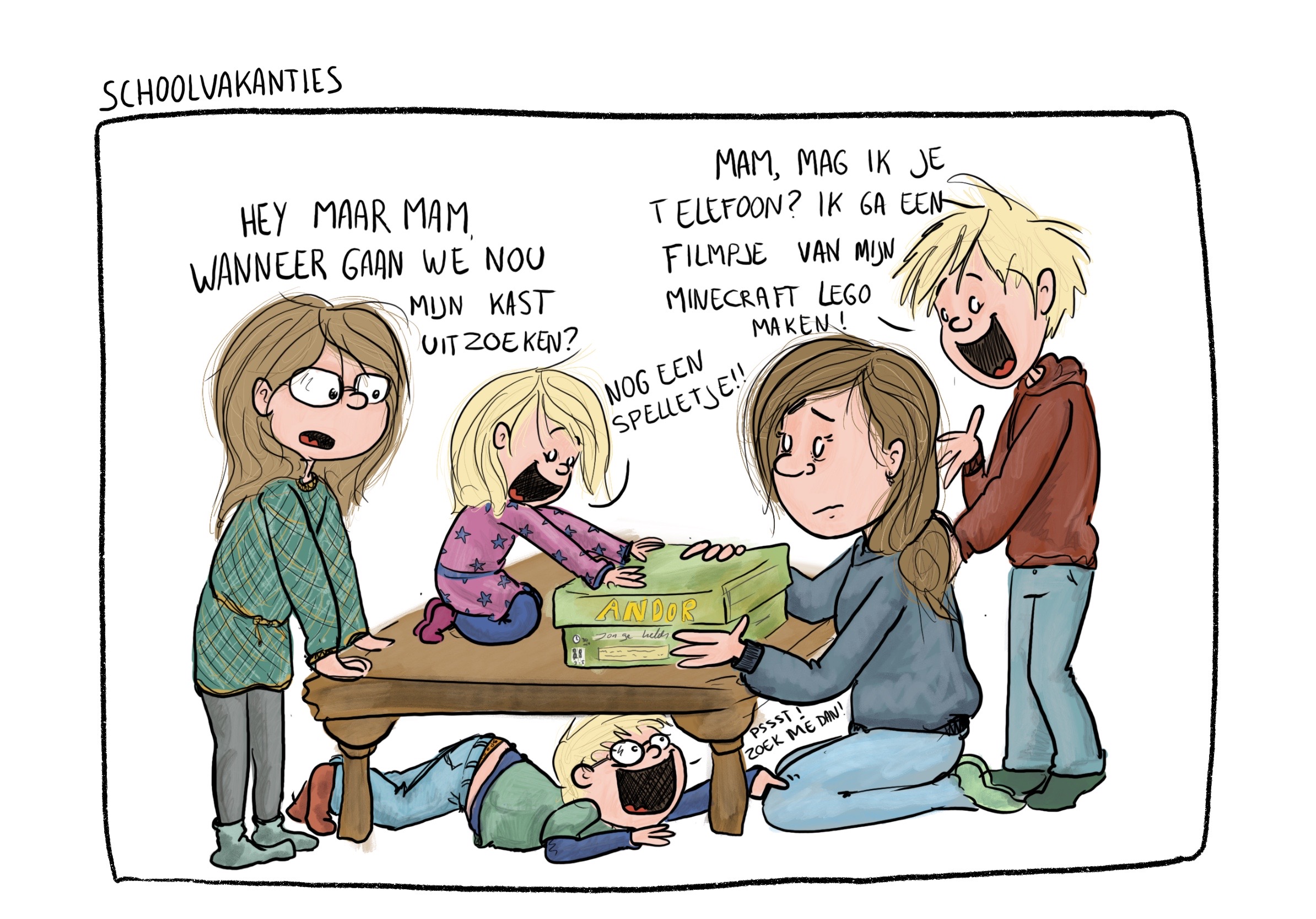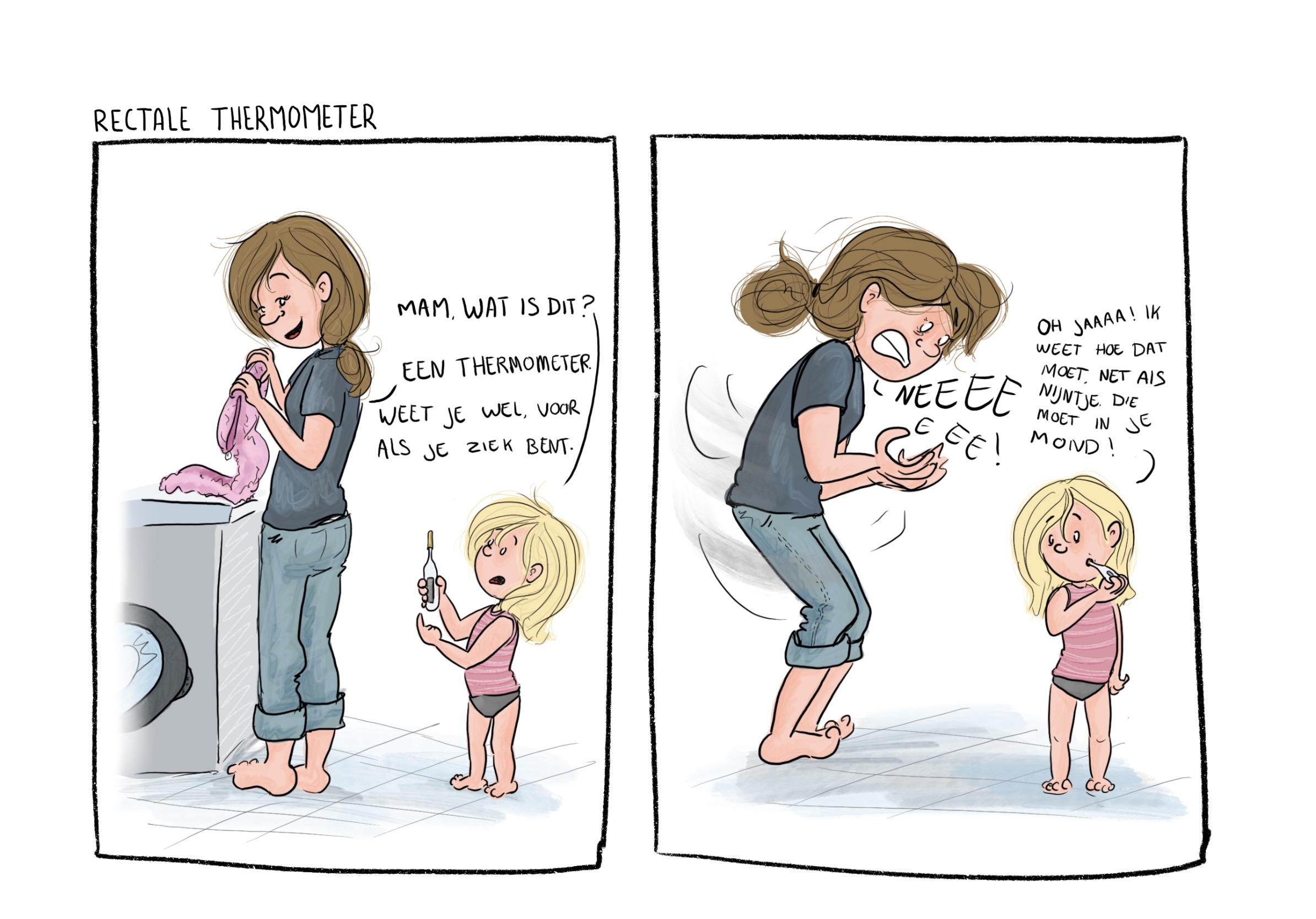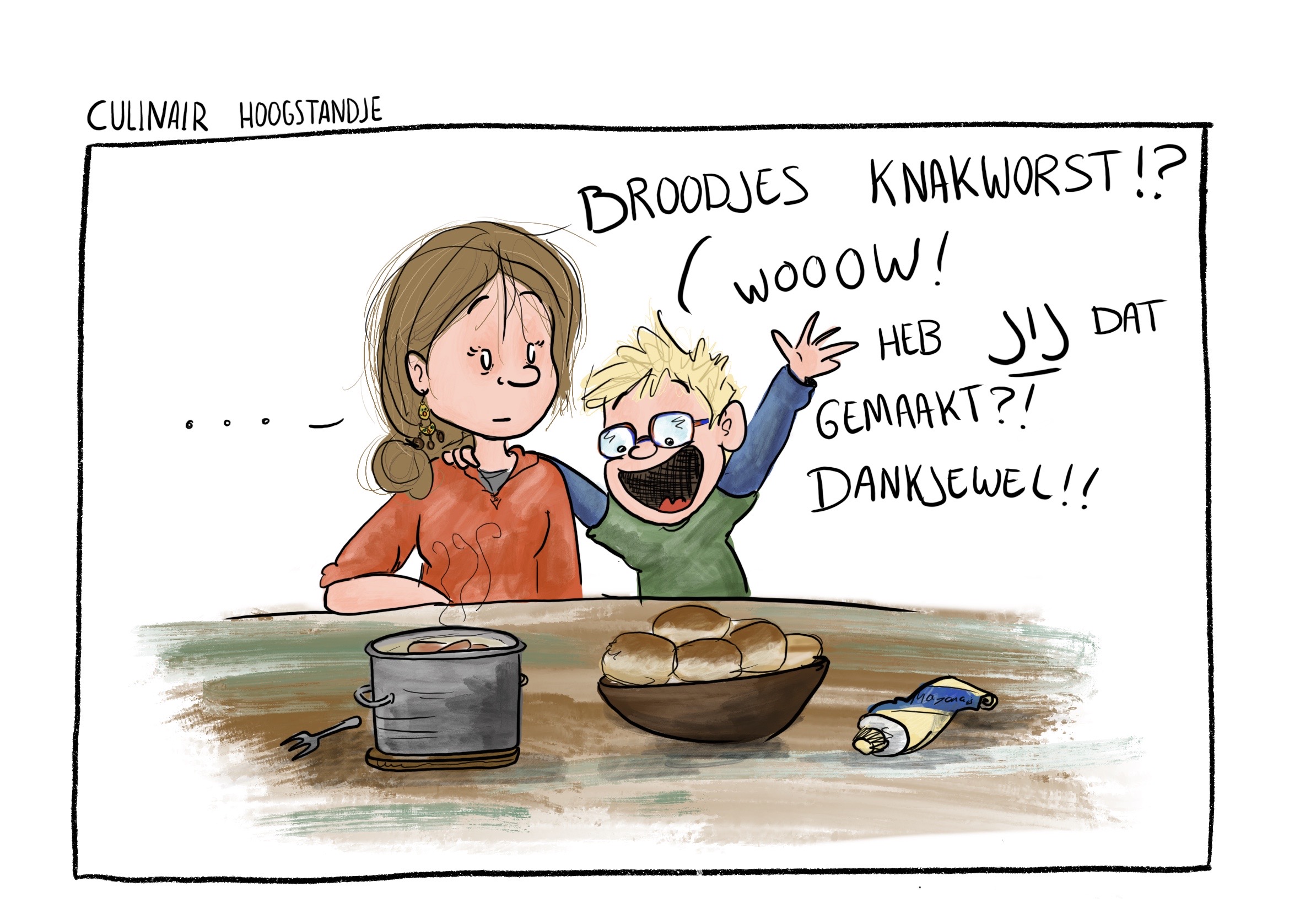 Brullende baby’s, de honderd jaar die het duurt om überhaupt het huis uit te komen met kinderen, eindeloze manieren waarop je van het eten een bende kunt maken… het ouderschap viel me niet mee! Dat had ik van te voren, met mijn sociale opleiding en interesse in pedagogiek, even niet helemaal goed ingeschat. Ik begon gauw te vermoeden dat meer ouders deze ervaring hadden, maar dat iemand er als eerste over moest beginnen. Om mijn eigen mama-zijn te verwerken en om het gesprek tussen ouders open te breken, ben ik cartoons gaat tekenen over het dagelijkse leven met kinderen.