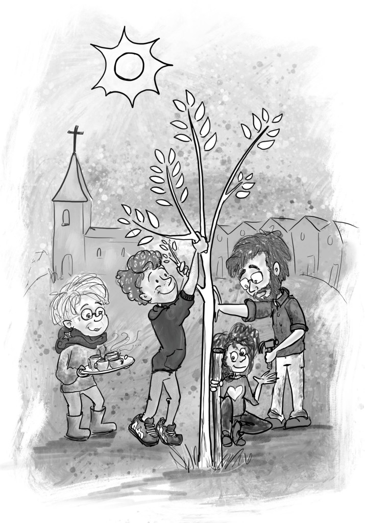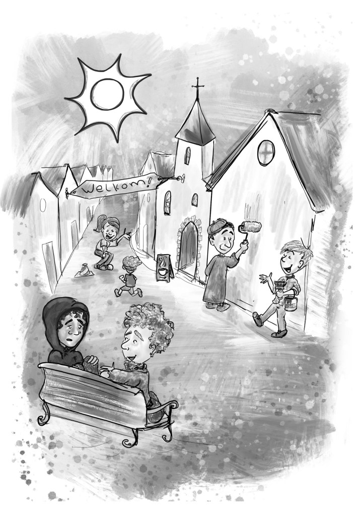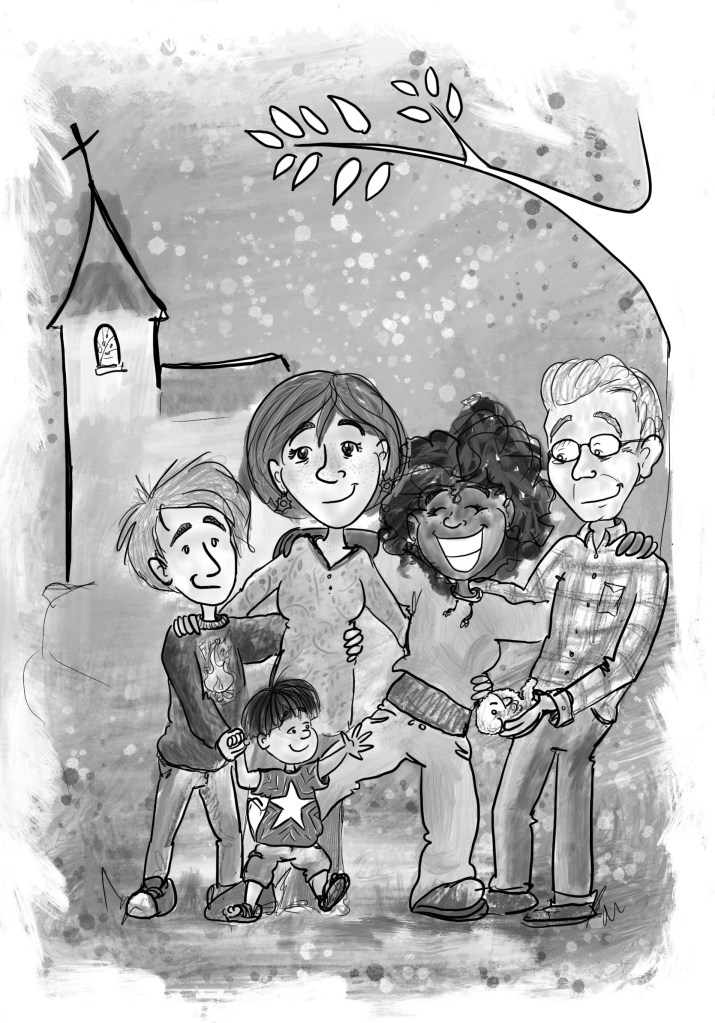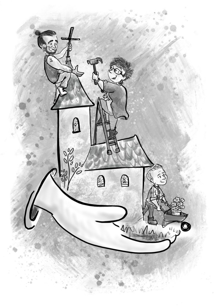 Samen jong Weer een heel nieuwe uitdaging: illustraties in zwart-wit. Dit mooie boek gaat over kerkopbouw door alle generaties.