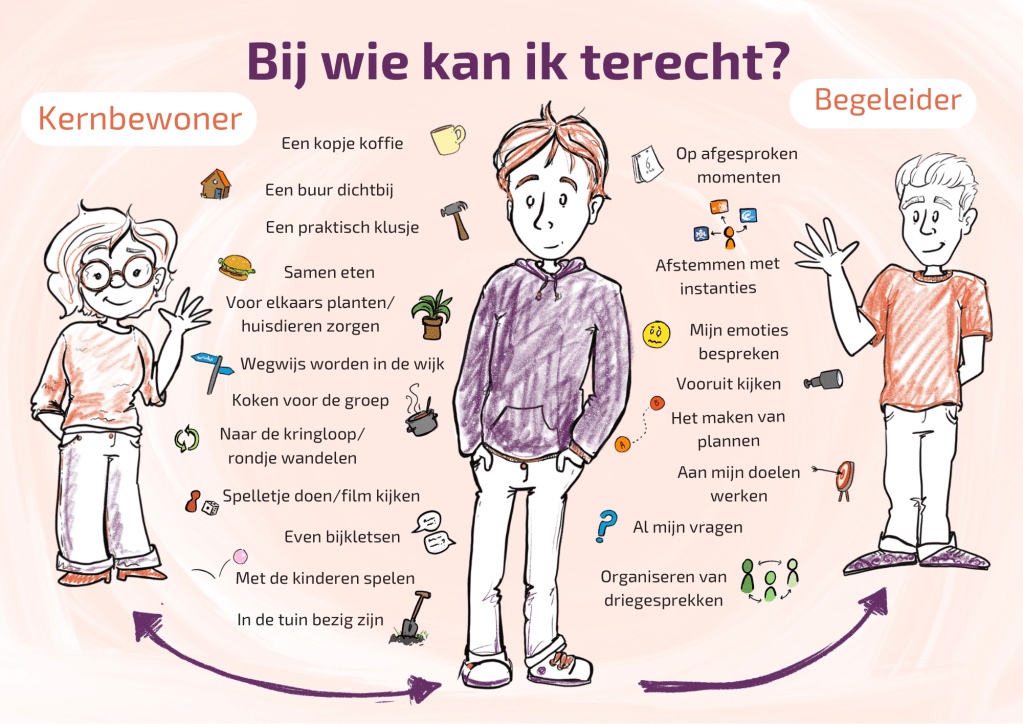 Deze plaatjes maakte ik in opdracht van stichting Timon. Voor de verschillende woonvormen die onder hun sociale paraplu vallen wilden ze graag helder inzichtelijk maken voor de jongeren waarvoor ze bij wie terecht kunnen. Mooie klus, waarbij veel over en weer gecommuniceerd werd over inhoud en vormgeving.